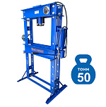 Усилие 50 тонн. Пресс гидравлический. Привод: ручной. Две скорости подачи пуансона. Первая скорость для быстрой подачи штока к рабочей поверхности, вторая (медленно) для выпрессовки. Применяется для запрессовки подшипников, деталей машин и механизмов в гаражах, автосервисах и СТО.