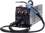 Диапазон сварочного тока 30-220А. Мощность 6,3 кВт. Полуавтоматический сварочный аппарат c функцией ММА. Для сварочной проволоки Ø 0.8-1 мм.