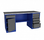 Двухтумбовый. Допустимая нагрузка на столешницу 1000 кг. Опорные элементы выполнены сварными из холоднокатаной стали. Для выполнения сборочных, ремонтных, слесарных, монтажных и других видов работ на производстве, в сервисных центрах, мастерских, гаражах, а также для обучения технологии в учебных заведениях. Комплектуется полкой-стенкой, расположенной под столешницей для удобного размещения габаритного инструмента и оснастки. Размеры верстака: 855x1796x696 мм. Вес: 128 кг. Поставляется в 4 комплектациях на выбор.