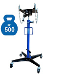 Плавная регулировка высоты. Педаль подъема. Клапан спуска. Две ручки для перемещения. 4 поворотных колеса с подшипниками обеспечивают легкость перемещения. г/п 500кг. Подъём 1120-1880мм. Для монтажа агрегатов и трансмиссии в легковом автосервисе или гараже