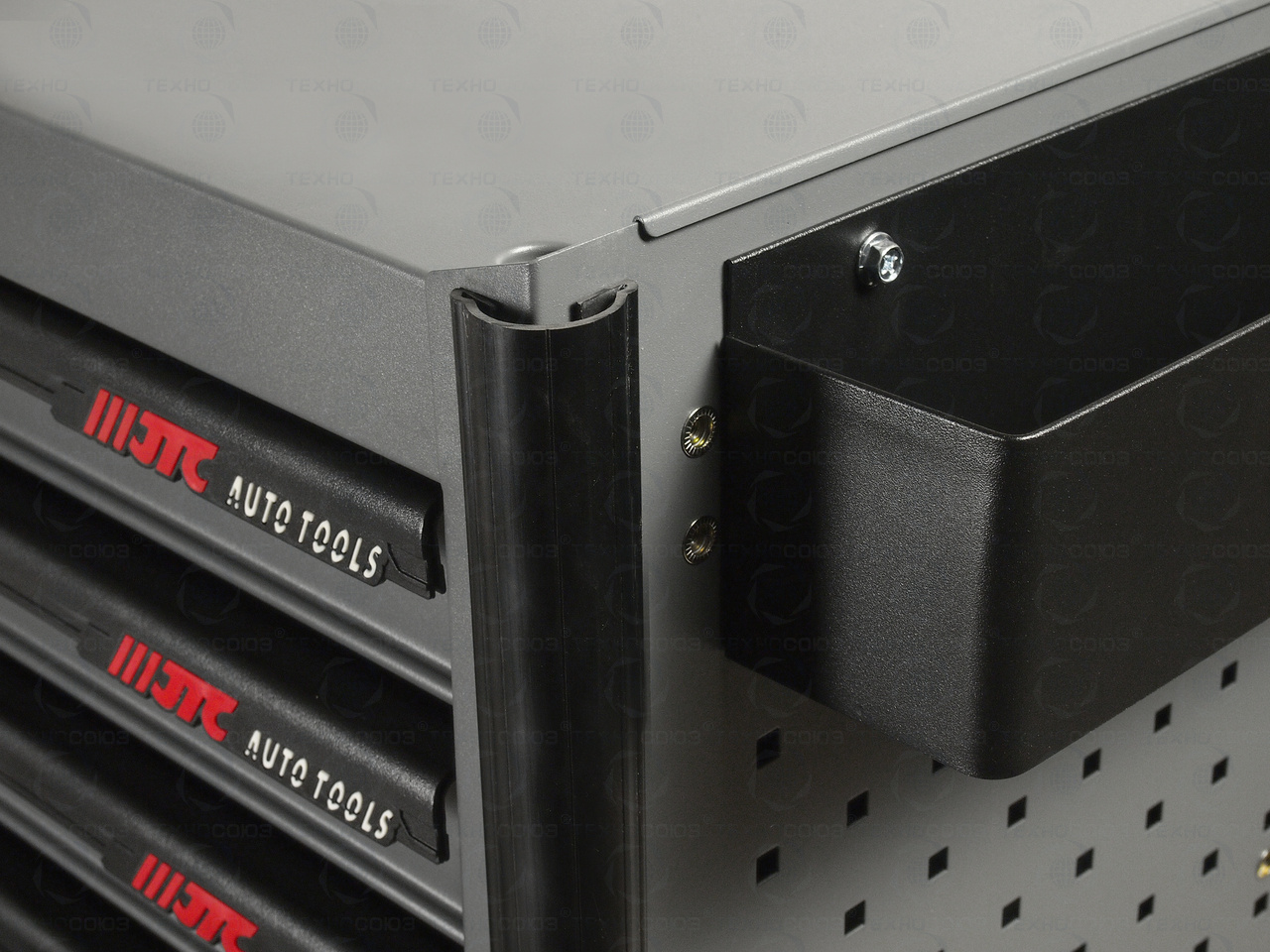 • Перфорированные боковые стенки с квадратными отверстиями предоставляют возможность разместить дополнительные аксессуары для хранения инструментов.
