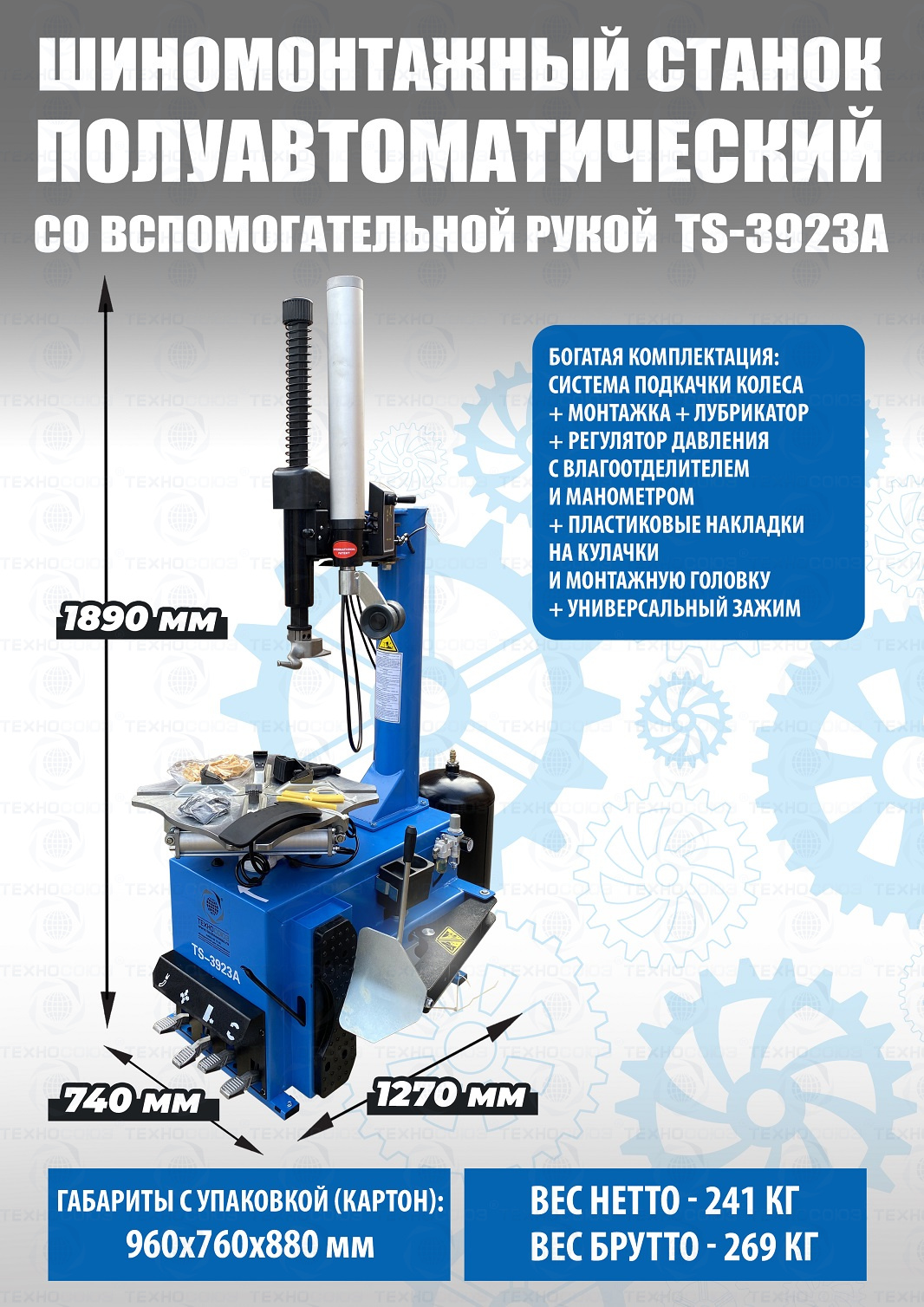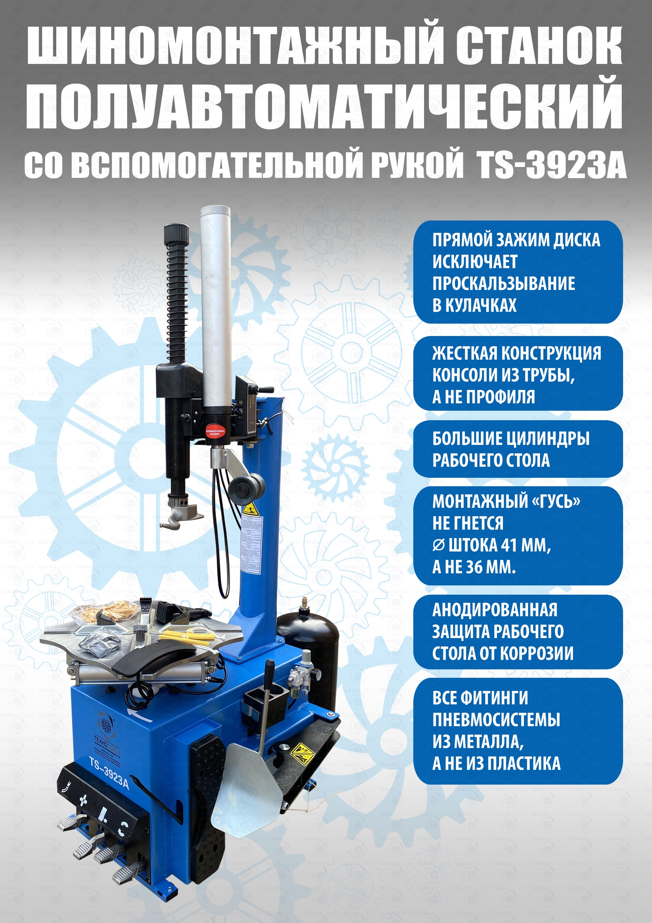 TS-3923A Станок шиномонтажный (с бустером) полуавтомат со вспомогательной рукой. Для больших и широких колес. Комплектуется встроенным увеличенным бустером емкостью 24 литра (взрывная подкачка) + дополнительной вспомогательной рукой для работы с низкопрофильными шинами и RanFlat! Для монтажа и демонтажа колес легковых автомобилей, легких грузовиков, не больших автобусов и коммерческой техники. Рекомендуется для постов со средней и высокой проходимостью. Внешний зажим 12-22”. Внутренний зажим 13-24” Напряжение 220В/380В.