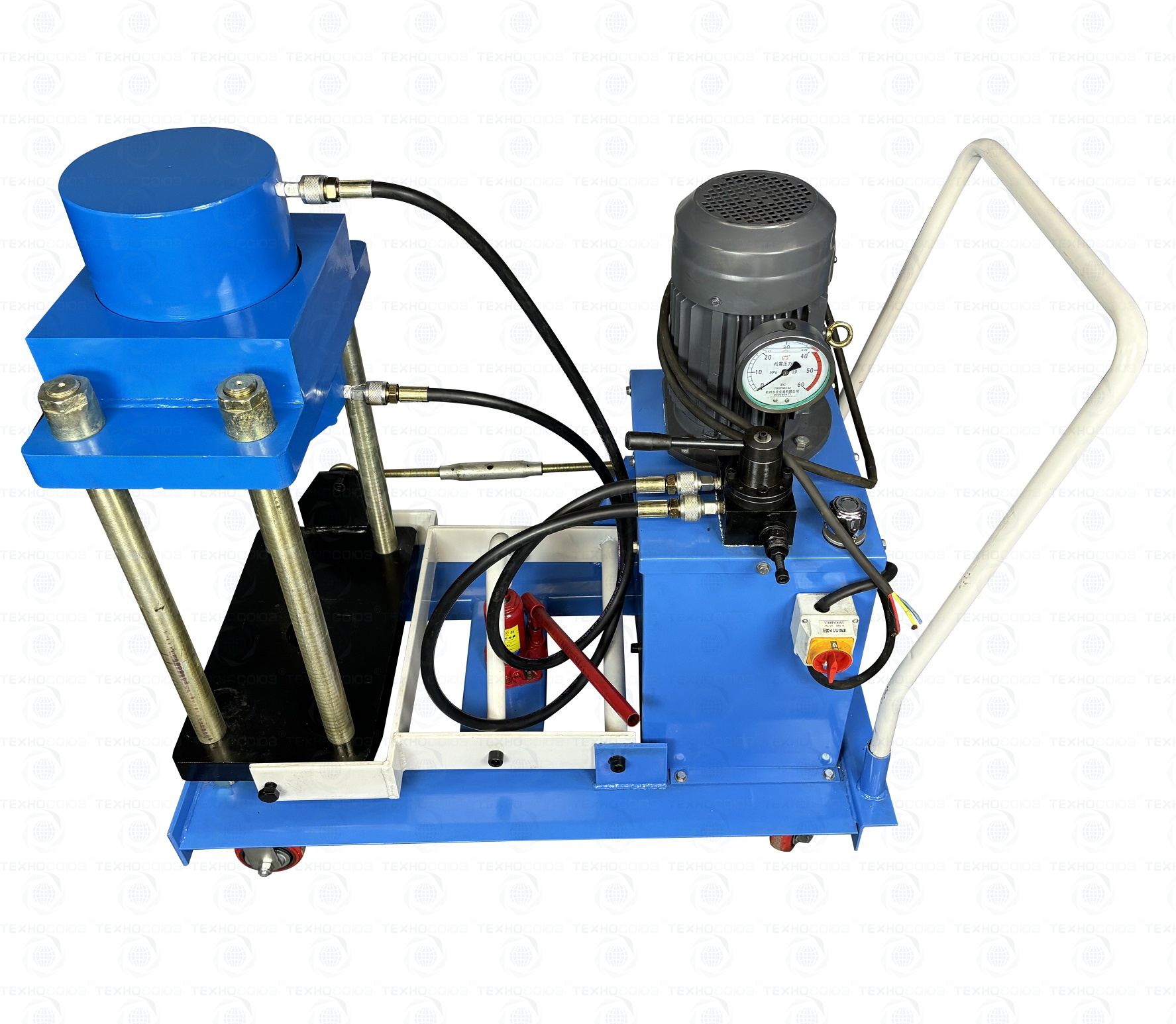 Надежные прорезиненные колеса позволят перемещать шкворнедав по любой поверхности